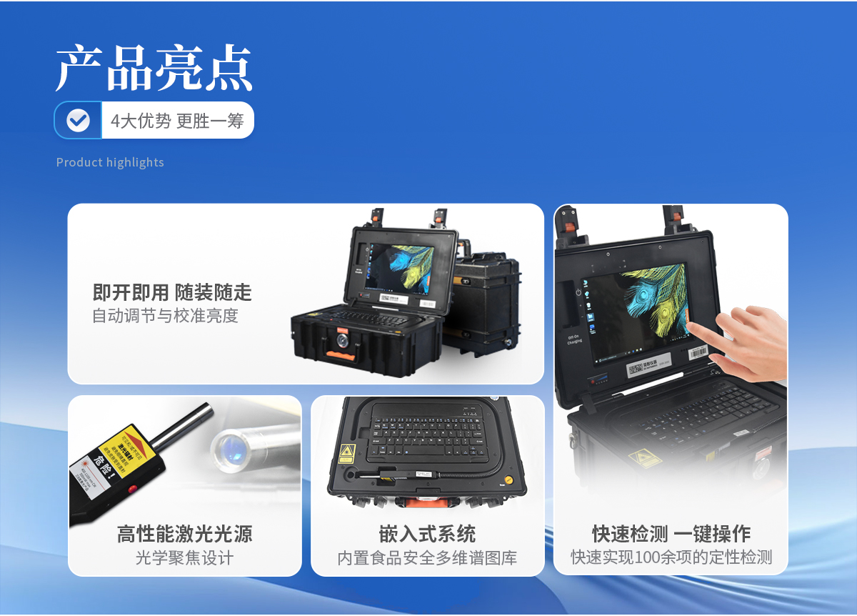 食品違禁添加物、色素添加、農(nóng)獸藥殘留檢測(cè) 爆炸物、危險(xiǎn)化工品、易燃易爆品檢測(cè) 珠寶玉石鑒定、文物鑒別 生物醫(yī)藥檢測(cè)、材料表征、地址勘探等 其他各類訂制應(yīng)用