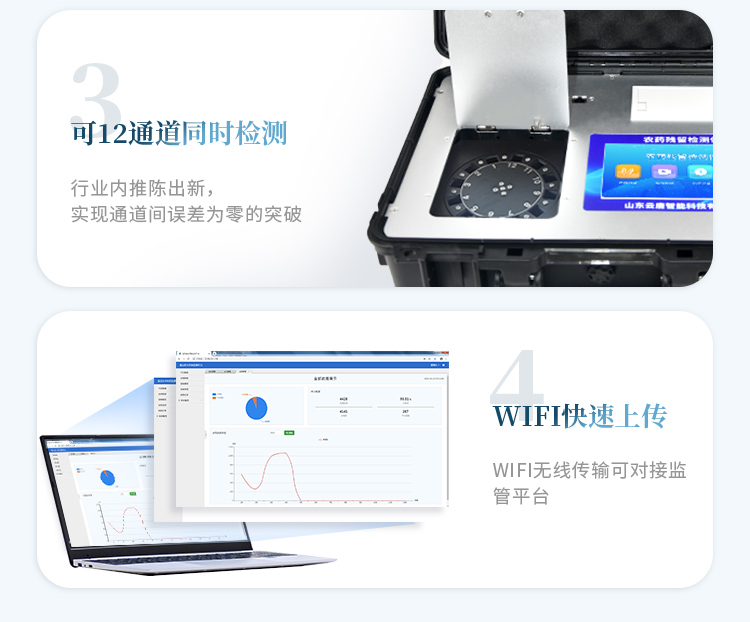 3、儀器帶有監管平臺,數據可局域網和互聯網數據上傳,檢測結果直接傳至食品安全監管平臺。進行區域食品安全監管及大數據分析處理與數據統計,檢測區域食品安全長短期動態,達到食品安全問題預估、預警 。