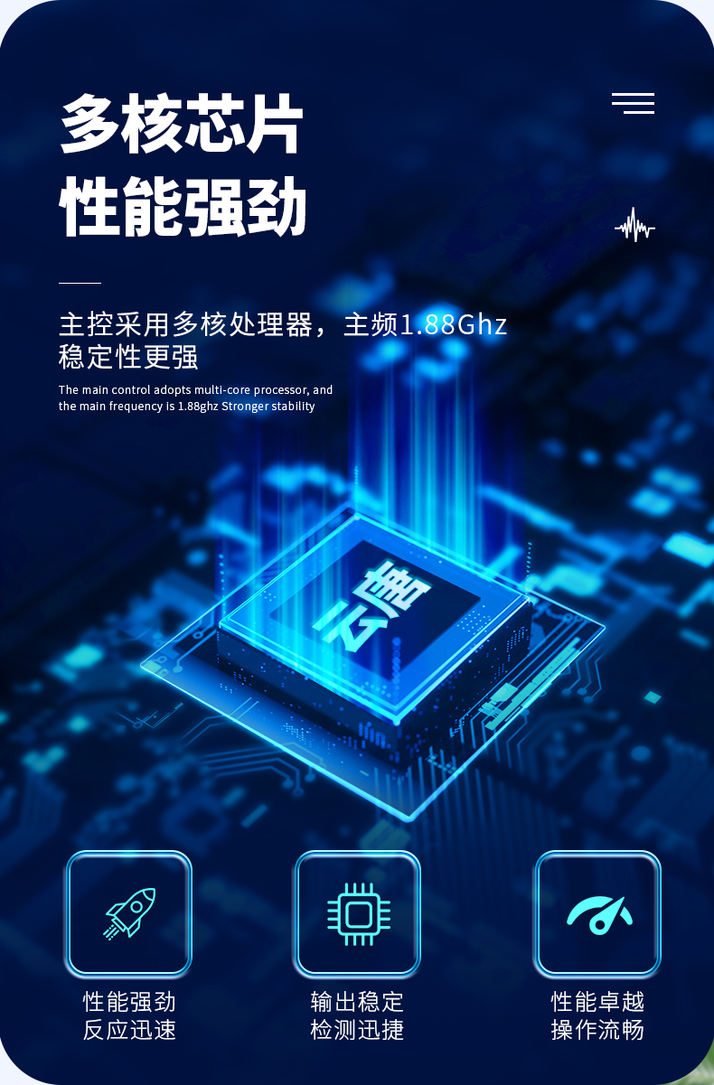 5、智能操作系統(tǒng),采用更加人性化操作,主控采用多核處理器,主頻1.88Ghz,運(yùn)轉(zhuǎn)速度更快速,穩(wěn)定性更強(qiáng)。