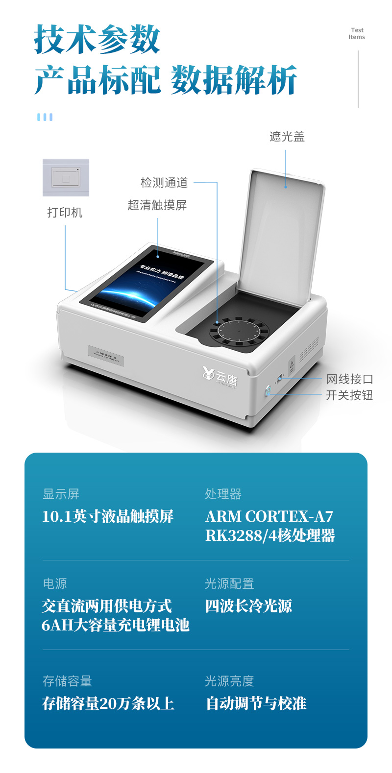 山東云唐智能科技有限公司生產(chǎn)的果蔬肉類檢測(cè)儀,采用臺(tái)式一體化設(shè)計(jì),可快速檢測(cè)幾十種項(xiàng)目,包含各種蔬菜水果中有機(jī)磷和氨基甲酸酯類農(nóng)藥殘留,病害肉診斷:肉中組胺、揮發(fā)性鹽基氮;各種肉食品中瘦肉精激素類殘留、抗生素、獸藥殘留等現(xiàn)場(chǎng)的定性定量檢測(cè)。