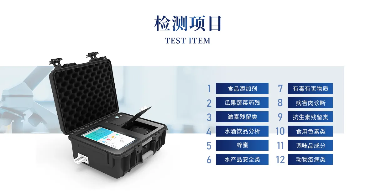 旋轉(zhuǎn)式食品安全檢測(cè)儀儀器檢測(cè)項(xiàng)目:
