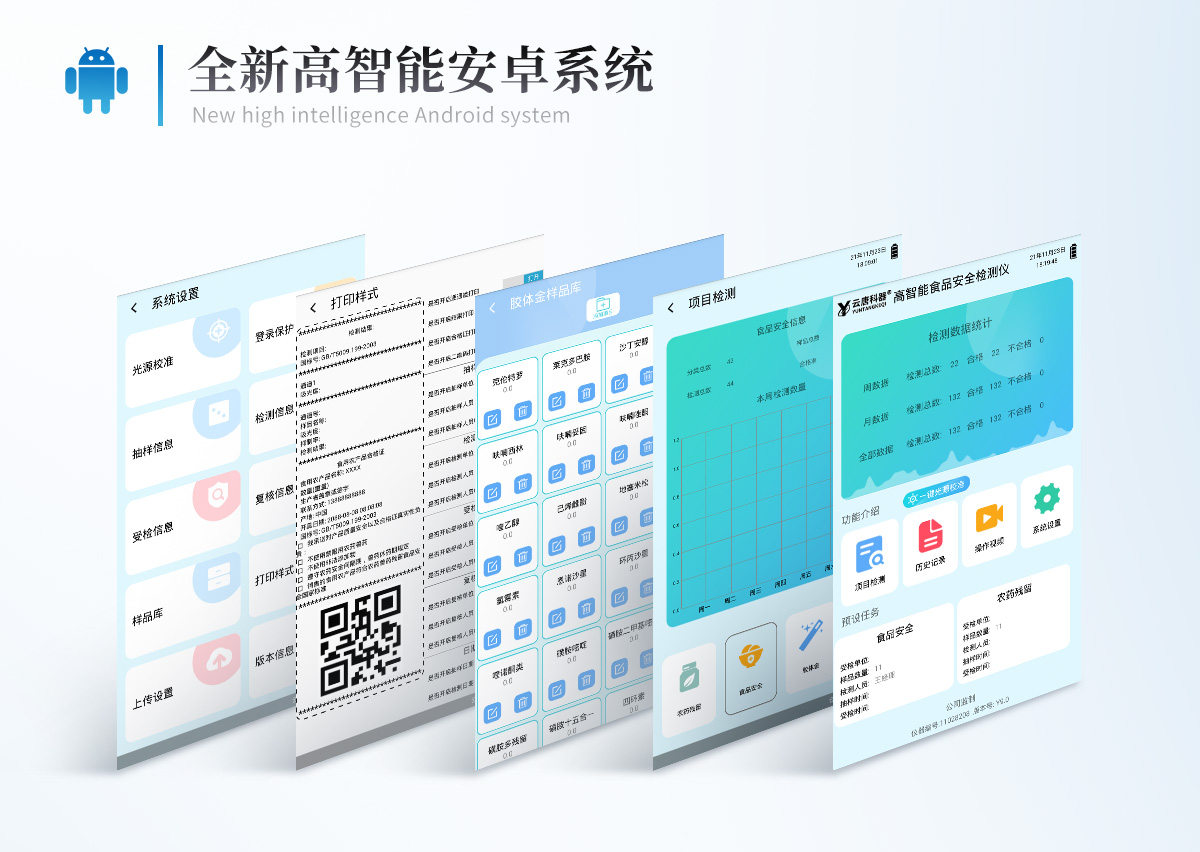 9.7、打印系統(tǒng):內(nèi)置全新打印機,新創(chuàng)自定義打印方式,可按需靈活勾選控制:產(chǎn)品合格證(國家農(nóng)業(yè)部標準要求),二維碼,抽樣信息、檢測信息,受檢信息、復核信息、抽樣日期、檢測日期等信息的打印。